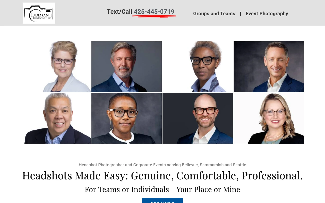 Located 6.33 miles from Bellevue in Sammamish, Ludeman Photographic holds a perfect 5.0 rating from 152 Google reviews. John Ludeman specializes in team headshots, event photography, and professional business portraits. Reviewers consistently mention how John creates a relaxed environment, gives helpful direction, and delivers clean, professional final images. Clients appreciate his eye for detail and ability to make the session comfortable. The studio provides multiple contact options for booking inquiries. If you need a Bellevue linkedin headshot photographer who can handle both individual and team needs, this Sammamish-based studio is a strong option. Visit studio website