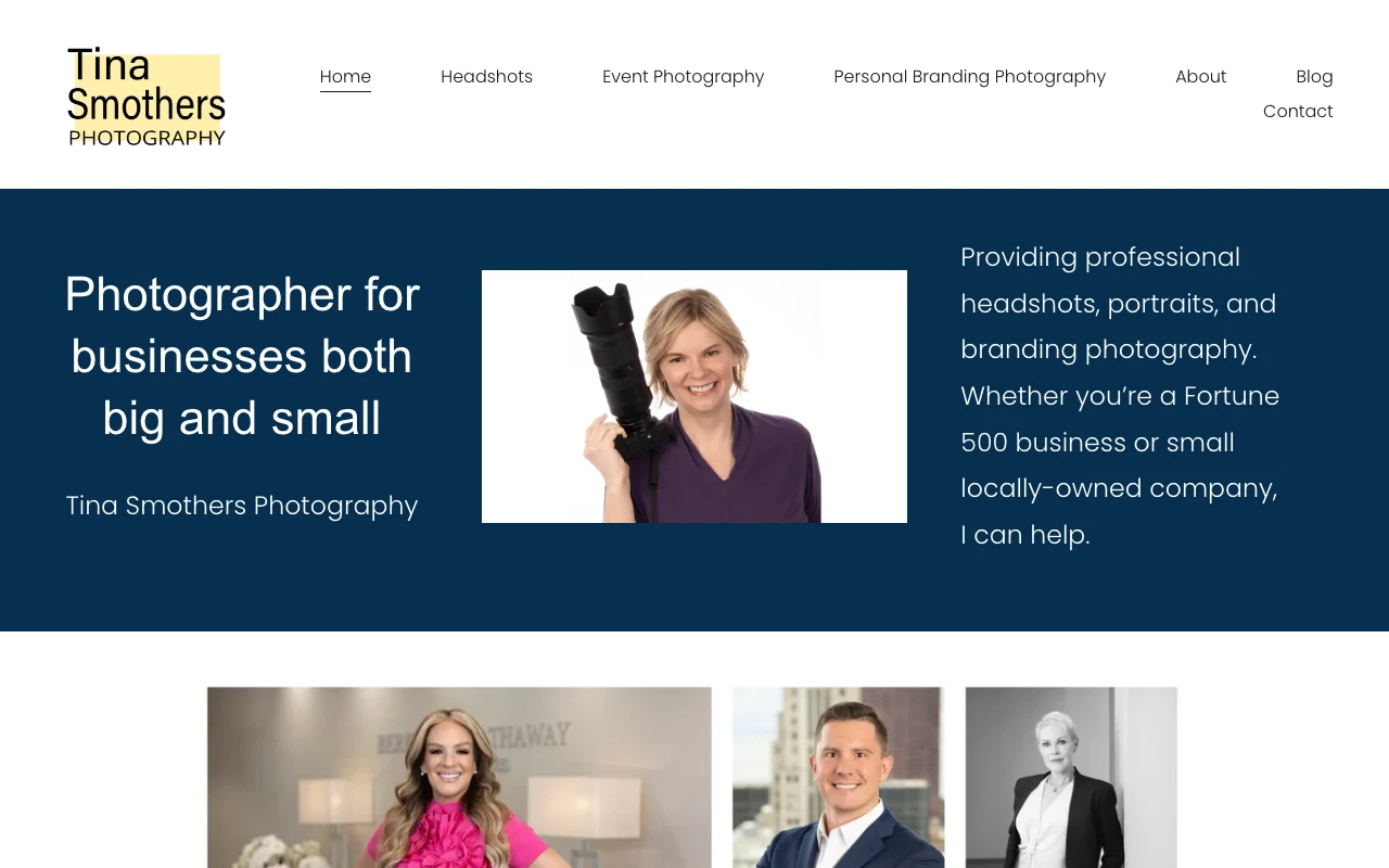 Tina Smothers Photography has 15 years of experience working with Fortune 500 companies. Corporate headshots & portraits are done at your office for the convenience of your staff, CEO, board members, or executives. The website highlights services such as group portraits portraits of your whole team together learn more, personal branding image collections for small business owners learn more, and event photography document your private or corporate event learn more. Google Maps currently shows a 5.0 rating from 66 reviews. One recent review notes: Tina , did a great Job at our Work conference . Tina, took my photos so that I could use a Photo for my LinkedIn Profile . Thanks Tina for making me look good . Chicago clients looking for polished, business-ready images should consider this studio if the portfolio style matches what they need. Visit studio website