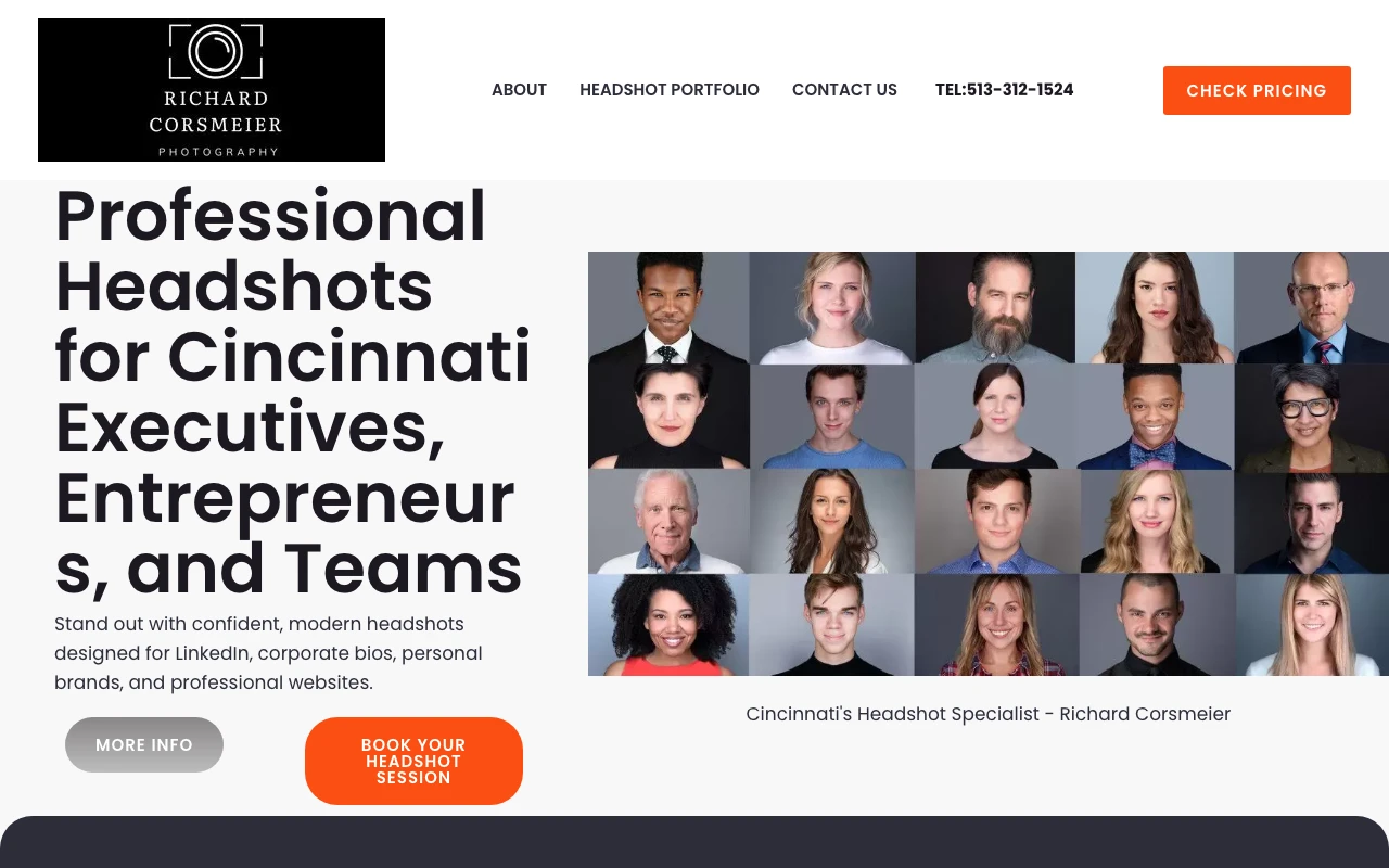 This studio presents itself as a focused option for professional headshot sessions. The website highlights services such as professional headshots, linkedin headshots, and corporate portraits. Google Maps currently shows a 5.0 rating from 12 reviews. One recent review notes: I had an amazing experience getting my headshots taken! Jeff is incredibly talented, professional, and made the entire session feel effortless. The final photos were beyond my expectations.. crisp, well-lit, and captured my personality perfectly. Highly recommend!! Cincinnati clients looking for polished, business-ready images should consider this studio if the portfolio style matches what they need. Visit studio website