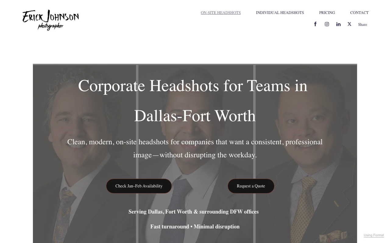 Operating out of Mockingbird Lane approximately 4.3 miles from downtown, Dallas Portrait Photographer offers fast and convenient corporate portrait services. With a 5.0 rating from 15 Google reviews, photographer Marcus is known for his flexibility and willingness to work around busy client schedules. He shoots multiple poses and provides various edited backgrounds, giving you a diverse set of options for different professional platforms. Clients appreciate his accommodating nature, even welcoming children who happen to tag along to the shoot. If you need a straightforward, highly professional headshot session outside the immediate downtown traffic, this studio provides excellent service and quality results. Visit studio website