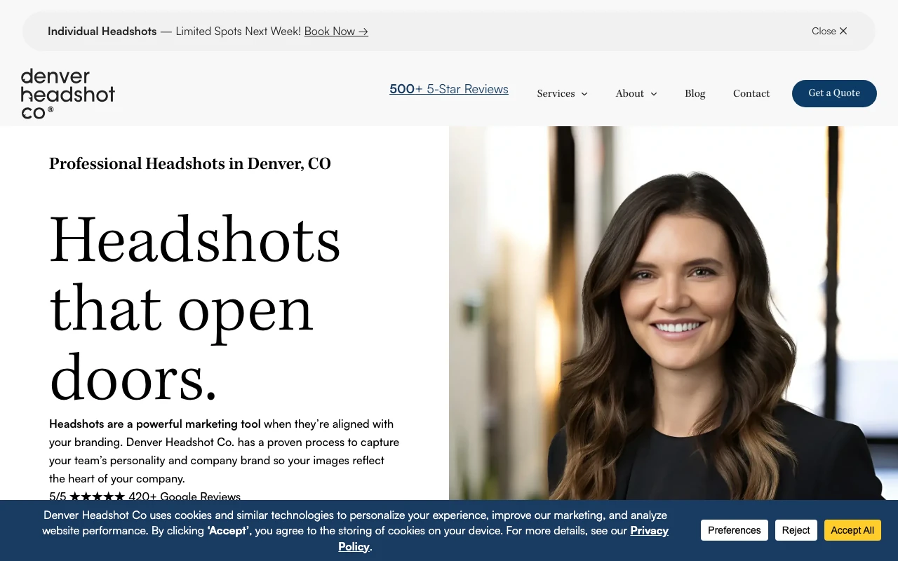 Situated at 3300 Walnut St UNIT 118, Denver Headshots by Tommy Collier & Aaron Lucy boasts a 5.0 rating backed by 323 Google reviews. This studio is located 1.96 miles from the center and focuses on professional headshots, LinkedIn portraits, and corporate photography. Clients frequently highlight Aaron's ability to break the ice and bring out natural smiles, making the entire photography process smooth and enjoyable even for those who dislike being photographed. Reviewers note the quick, efficient sessions that yield highly usable professional branding images. If you need a relaxed environment with experienced direction, you can reserve a spot through their online contact and booking pages. Visit studio website