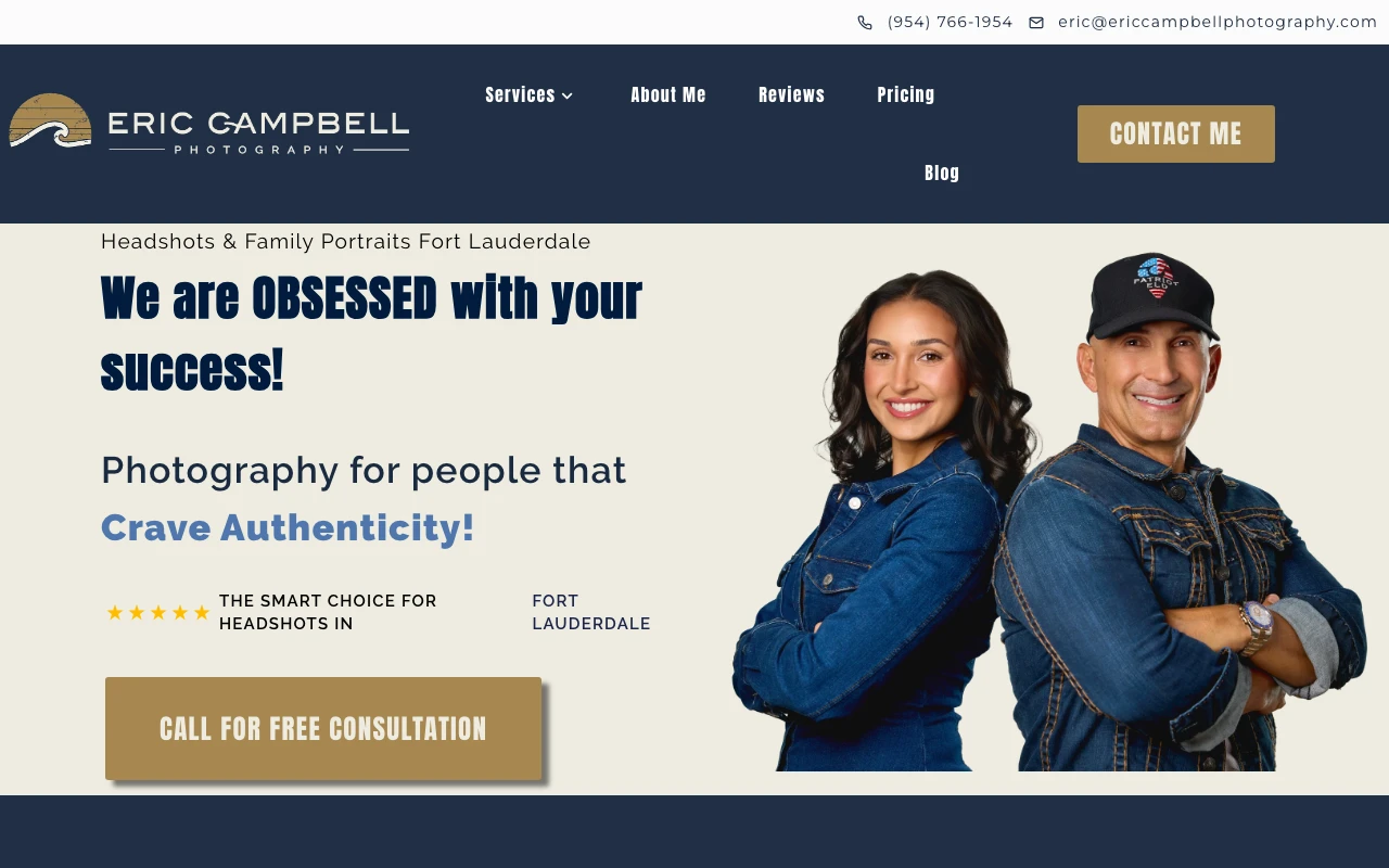 Operating out of the Cypress Creek area, Eric Campbell Photography boasts an impressive 5.0 rating from 574 Google reviews. Eric is highly regarded for his personalized approach, taking the time to discuss your company vision, lighting preferences, and even utilizing color charts to match your complexion. Clients rave about the incredibly fast turnaround, often receiving their edited gallery just one day after selecting their favorites. The studio provides flexible options, including headshots for new hires and convenient at-your-office sessions. This makes it an exceptionally practical choice for busy Fort Lauderdale executives who need tasteful, natural-looking business portraits without the hassle of traveling downtown. Visit studio website.