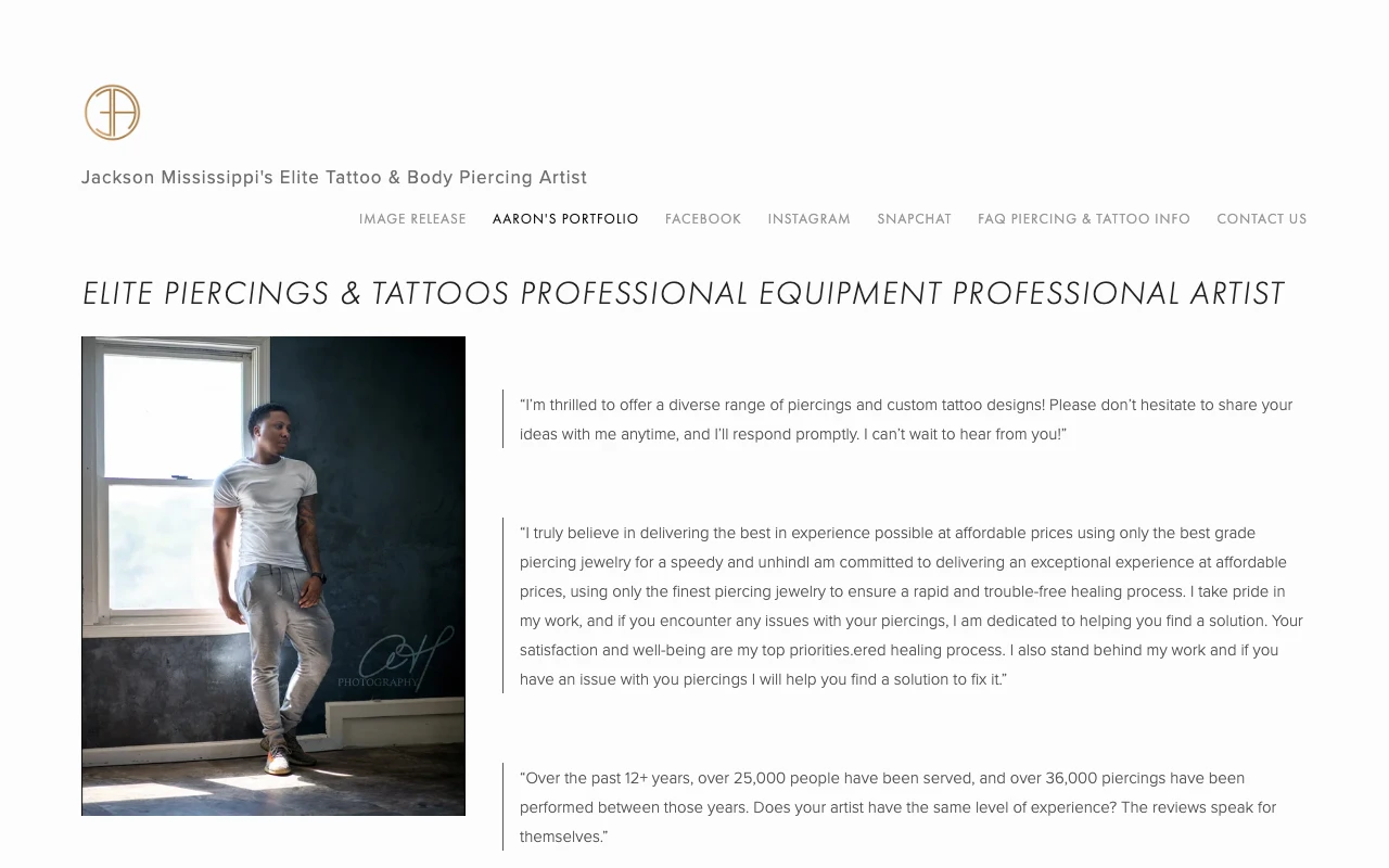 Simply the best Tattoo and Piercing Artist in Jackson Mississippi and all surrounding areas period. The website highlights services such as faq piercing & tattoo info, professional headshots, and linkedin headshots. Google Maps currently shows a 4.8 rating from 286 reviews. One recent review notes: I was really nervous going in to get my tragus piercing, but he was super nice and immediately made me feel comfortable. He cracked jokes, talked me through everything, and completely eased my nerves. The piercing itself was seamless, quick, and honestly way better than I expected. I love how it turned out and would definitely recommend him to anyone looking for a great piercer. Jackson clients looking for polished, business-ready images should consider this studio if the portfolio style matches what they need. Visit studio website