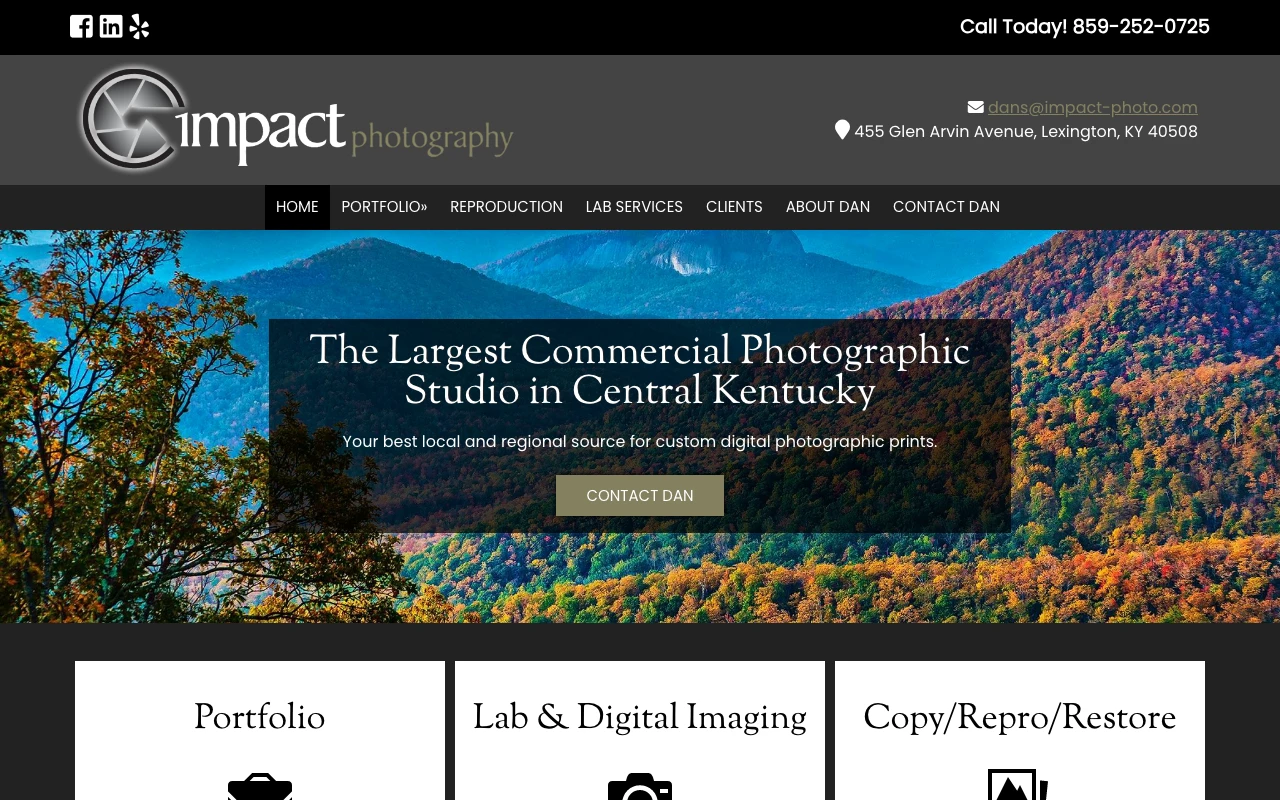 Impact Photography is a commercial, industrial architectural and product photographer. We offer photo restoration, business headshots, and more in Lexington, KY and surrounding areas including Central Kentucky. Click or call us today! The website highlights services such as professional headshots, linkedin headshots, and corporate portraits. Google Maps currently shows a 5.0 rating from 10 reviews. One recent review notes: I could not be more pleased with Dan’s work. Not only did he help me solve a mystery as to the age of my photo, but he restored it beautifully. He was professional and finished the work quickly. Truly a 5 star business. I recommend them highly. Lexington-Fayette clients looking for polished, business-ready images should consider this studio if the portfolio style matches what they need. Visit studio website