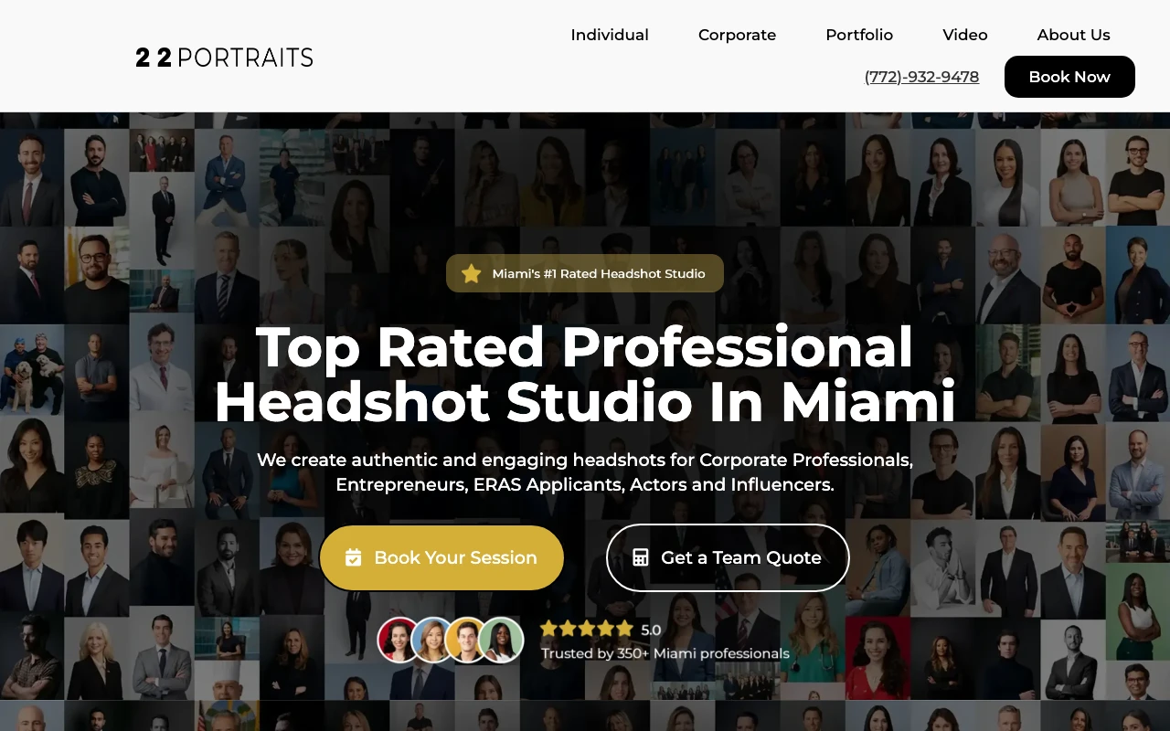Located less than a mile from the center of Miami on SE 1st Street, 22PORTRAITS is a highly rated studio managed by Kirill. With a flawless 5.0 rating from 348 Google reviewers, this studio consistently receives praise for efficient sessions and clear posing guidance. Reviewers specifically highlight Kirill's expertise with ERAS headshots and corporate portraits for local asset management firms. The studio offers packages that include 5 color-corrected pictures, group shots, and one retouched picture per person. Clients appreciate the unhurried atmosphere and the practical direction provided during the shoot. If you need a corporate or medical residency headshot right in the downtown area, this studio offers a proven track record of excellent results. Visit studio website