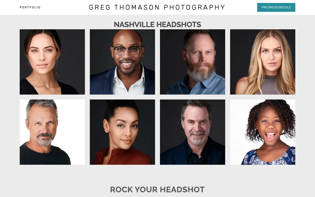 Greg Thomason Photography is Nashville. The website highlights services such as get your foot in the corporate door, improve your marketability, and stand out to casting directors. Google Maps currently shows a 5.0 rating from 198 reviews. One recent review notes: There are two very important things I look for when choosing a photographer… the photographer has a great eye and makes me feel comfortable, Greg Thomason does both and more! I had such a wonderful experience getting my acting headshots done by him that I had to go back to shoot again! I can’t recommend him enough! Nashville-Davidson clients looking for polished, business-ready images should consider this studio if the portfolio style matches what they need. Visit studio website