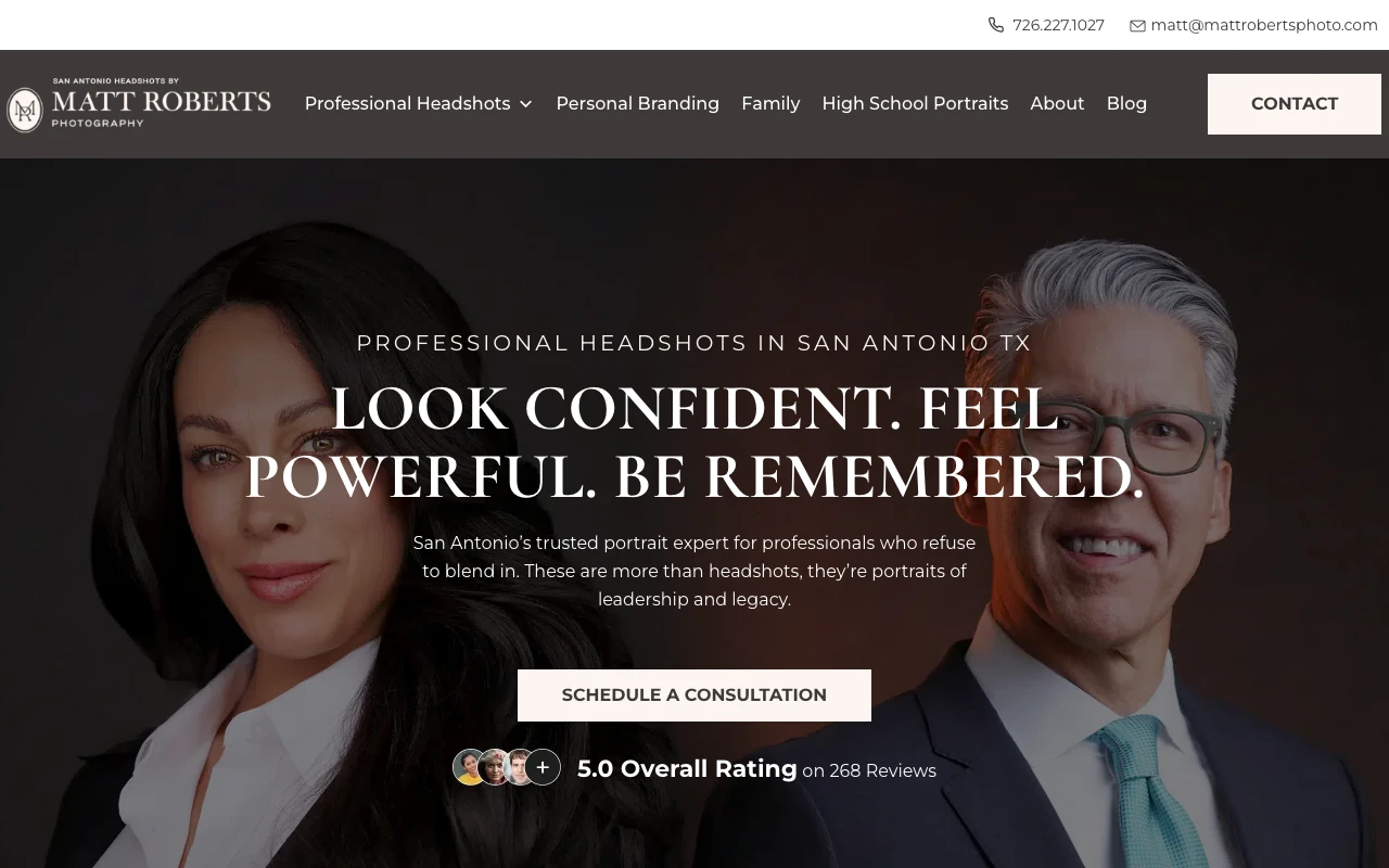 Matt Roberts Photography operates out of a studio just 0.63 miles from the center of San Antonio. With a flawless 5.0 rating from over 300 Google reviews, Matt is frequently praised for putting clients at ease and providing excellent posing guidance. Reviewers specifically highlight the collaborative process, noting that he reviews photos with you at the end of the session to ensure you are happy with the results. The studio focuses heavily on professional and business headshots, making it a highly reliable choice for corporate needs. Booking is straightforward with direct links available on his website. Visit studio website