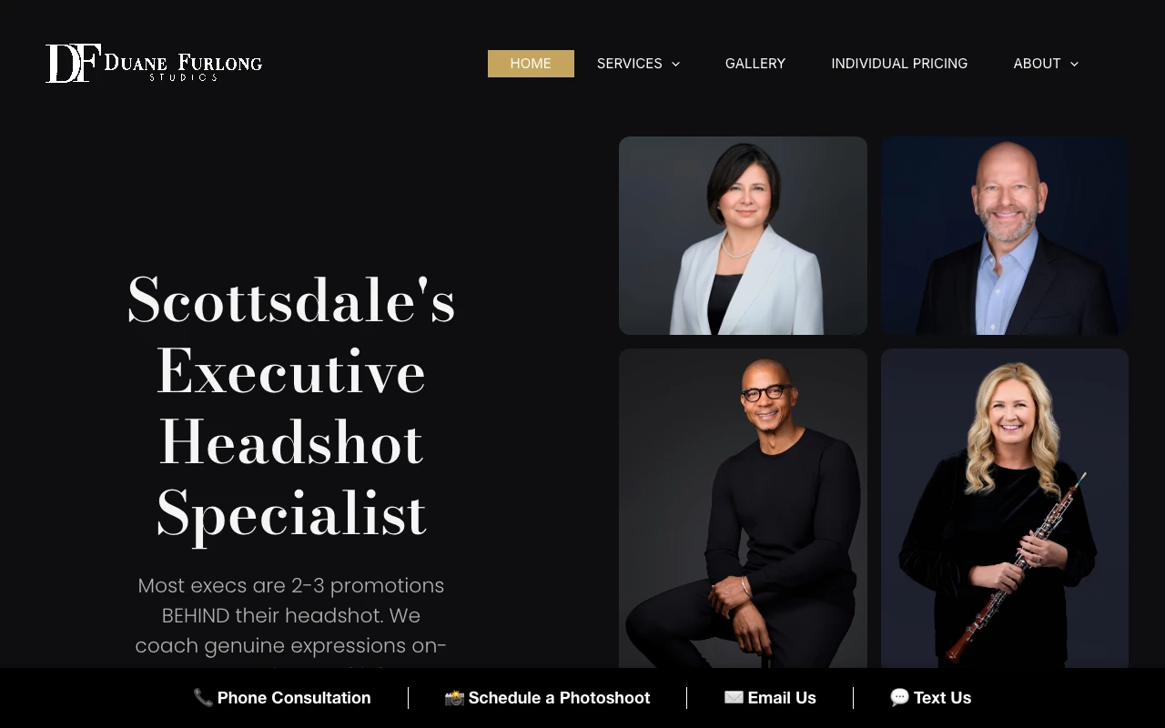 Situated on East Palo Verde Drive, about 2.4 miles from the main Scottsdale hub, Duane Furlong Studios boasts an impressive 5.0 rating across 355 Google reviews. This studio specializes in adding dimension and warmth to corporate photography, making it a favorite among healthcare, tech, and real estate professionals. Reviewers consistently highlight the team's ability to capture genuine personality rather than just a sterile corporate look. Duane and his team offer comprehensive services, including on-site corporate headshots and event booths. If you need a full portfolio refresh that blends serious executive presence with approachable lifestyle branding, this highly reviewed studio delivers consistent results. Visit studio website