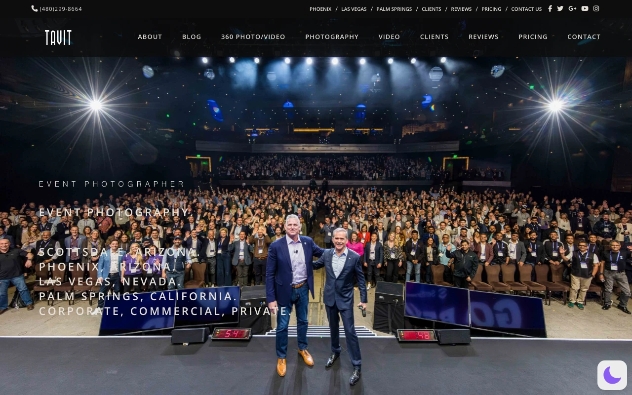 Tavits Photography is a full-service corporate event photographer servicing Phoenix, Las Vegas & Palm Springs. The website highlights services such as 360 photo/video 360 indoor setting, photography event photography | corporate event photographer, and business headshots | professional headshots. Google Maps currently shows a 5.0 rating from 122 reviews. One recent review notes: We hired Tavits Photography for our local corporate conference and they were amazing to work with. Tavit was professional and polite during the quote process, and we were lucky to have Jaron as our on-site photographer. He was incredible! He was polite, willing to take feedback/suggestions on-site, dependable, on-time, etc! I would hire them again in a heartbeat. Scottsdale clients looking for polished, business-ready images should consider this studio if the portfolio style matches what they need. Visit studio website