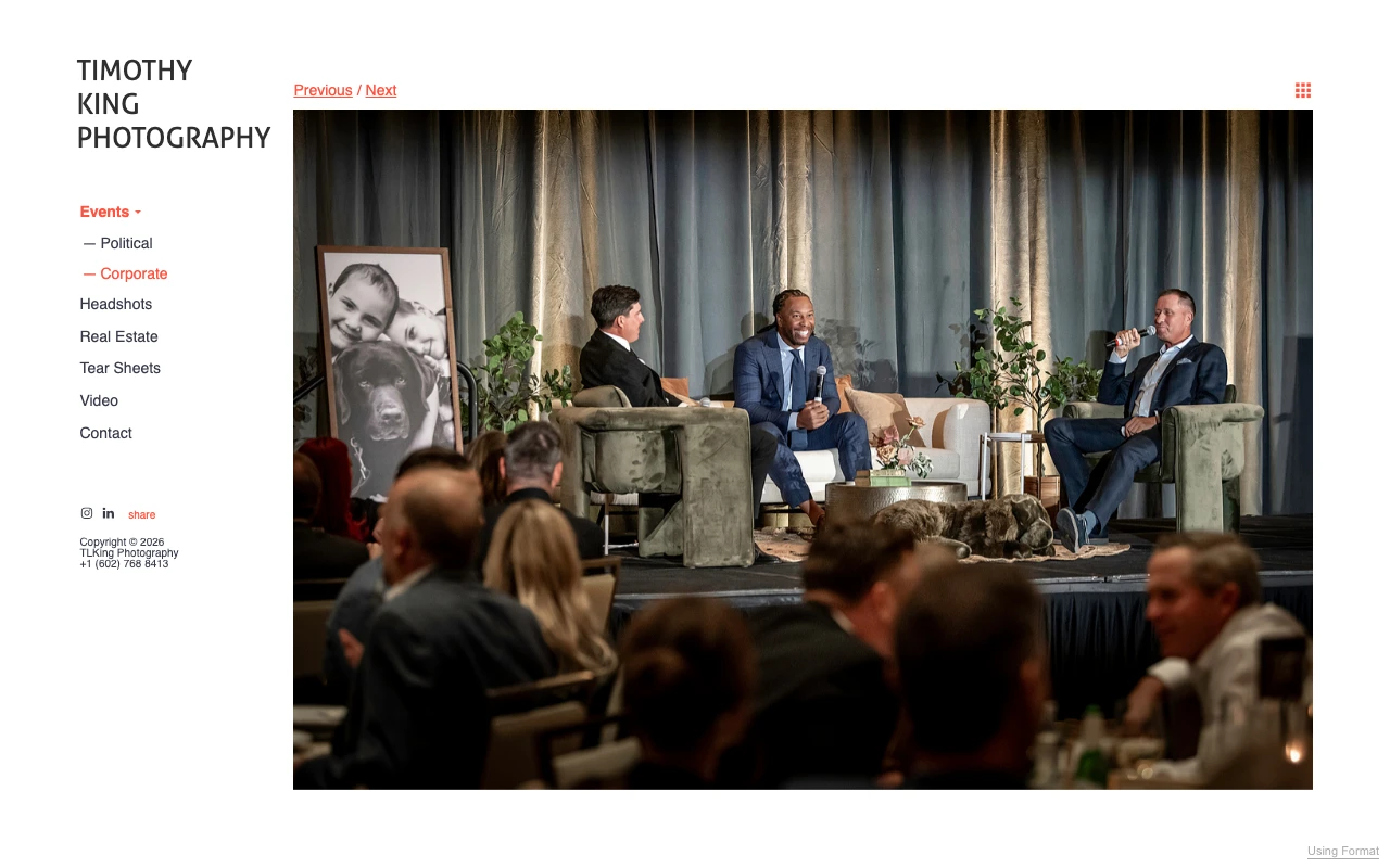 event photography, corporate events, awards ceremonies, scottsdale photographer, phoenix photographer, corporate headshots, freelance photo journalist. The website highlights services such as professional headshots, linkedin headshots, and corporate portraits. Google Maps currently shows a 5.0 rating from 6 reviews. One recent review notes: I recently had the pleasure of working with Timothy King Photography and was thoroughly impressed with Tim's professionalism, attention to detail and commitment to customer satisfaction. Tim provided an awesome, on-site experience for our electeds and executive team, which resulted in great corporate headshots and group photos. Highly recommend! Scottsdale clients looking for polished, business-ready images should consider this studio if the portfolio style matches what they need. Visit studio website