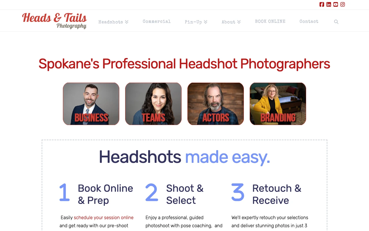 Chris at Heads and Tails Photography has built a significant reputation in Spokane, evidenced by 201 five-star Google reviews. Located about 1.3 miles from the city center on West Indiana Avenue, this studio is frequently cited for its Spotlight Series and a highly customized approach. Clients often mention that Chris provides specific coaching on poses, attire, and color choices to ensure the final result matches their industry standards. The process includes a live review session where you select your preferred images immediately after the shoot. This level of detail is particularly helpful for those who are uncomfortable in front of the camera or unsure of how to present themselves for a specific business role. The studio also maintains a presence on Yelp and Facebook, reinforcing its standing as a top-rated local option for professional portraits. Visit studio website