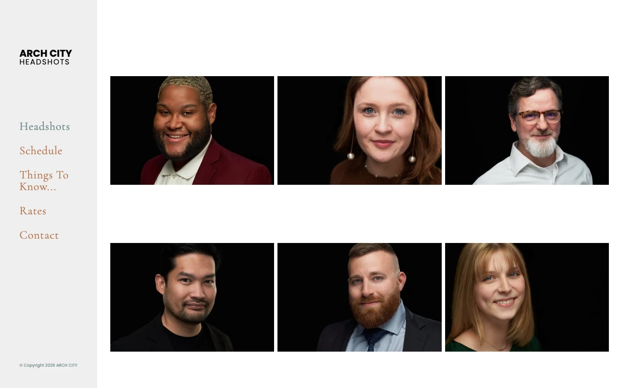 ARCH CITY. The website highlights services such as professional headshots, linkedin headshots, and corporate portraits. Google Maps currently shows a 5.0 rating from 4 reviews. One recent review notes: Rob did headshots for our office, and we couldn’t have been more impressed with the entire experience. He took his time discussing with our team what our goal was, offered suggestions on how to achieve it, and worked with our different schedules to make sure everyone was taken care of in a timeline that worked for us. He helps the model feel at ease with his professional and personable approach. The studio is beautiful and welcoming. As we continue to utilize Rob’s skills for each of our new employees headshots, I would recommend him to any company needing a fresh perspective to amazing images to represent your business and its people. St. Louis clients looking for polished, business-ready images should consider this studio if the portfolio style matches what they need. Visit studio website