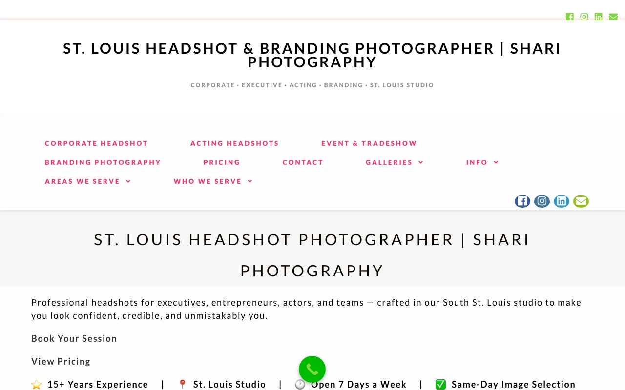 St. Louis headshot photographer Rez Behnam specializes in corporate, acting, and branding sessions. Expert direction, same-day selection. The website highlights services such as branding photography, galleries business headshots, and branding photography gallery — st. louis. Google Maps currently shows a 5.0 rating from 105 reviews. One recent review notes: I had such a great experience with Shari Photography. Sam made the entire shoot feel comfortable and easy, which really shows in the final photos. My headshots and branding photos turned out amazing; I was honestly blown away. He has a strong eye for brand photography and knows how to capture both personality and professionalism. I couldn’t be happier with the results and would absolutely recommend him to anyone looking for high-quality headshots or branding photography. I’d love to work with him again! St. Louis clients looking for polished, business-ready images should consider this studio if the portfolio style matches what they need. Visit studio website