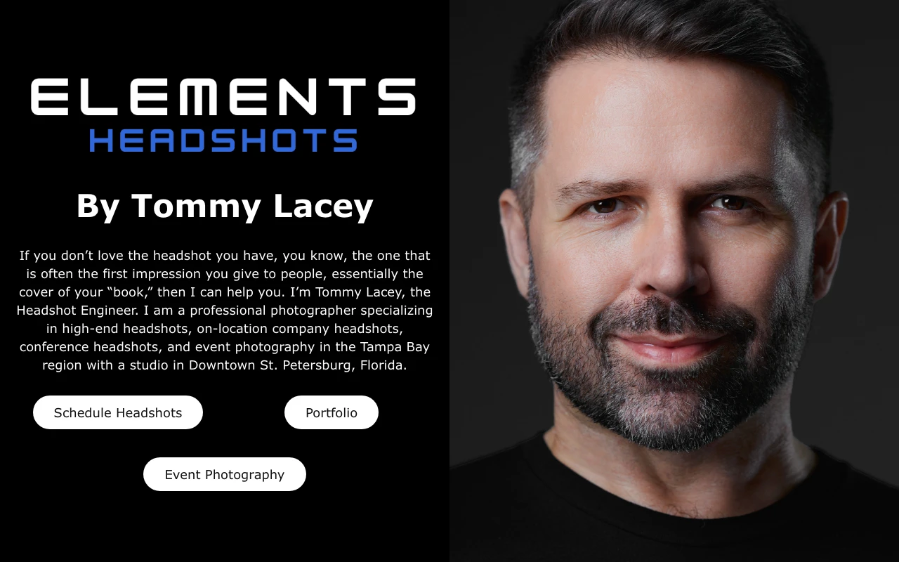 Elements Content Studio is positioned just 0.4 miles from the heart of St. Petersburg on 4th Street North. Holding a 5.0 rating from 10 Google reviewers, this studio is led by Tommy Lacey, who receives high praise for his extensive knowledge of photography and lighting techniques. Clients appreciate his ability to bring out their confidence and provide informative direction on how to look their best on camera. The studio also offers direct online contact forms for easy scheduling. For professionals working downtown who want a trusted expert to handle their LinkedIn or corporate headshots, Elements Content Studio provides a highly accessible and professional experience. Visit studio website