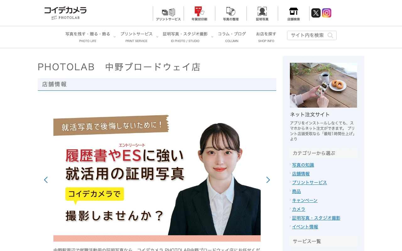 証明写真・写真プリントなら、コイデカメラ PHOTOLAB中野ブロードウェイ店へ!! 中野駅より徒歩5分! 就活、願書用、マイナンバーカード、パスポート申請の撮影など、各種証明写真のサイズを承っております。 フィルム現像は当日お渡しいたします. The website highlights services such as 写真を残す・贈る・飾るphoto life 写真を残す, プリントサービスprint service スマホ写真プリント, and 証明写真・スタジオ撮影id photo / studio 証明写真. Google Maps currently shows a 4.2 rating from 131 reviews. One recent review notes: 新しい職場に顔写真を提出しないといけないので、証明写真機もたくさんありますが、これから毎日見られることを考えると、久しぶりにフォトスタジオに来ました。 途中で見せてもらった写真はやっぱり少し違うかなと思い、撮り直してもらいました。 仕上がりも満足で、プロの手を借りてよかったと思います!. Tokyo clients looking for polished, business-ready images should consider this studio if the portfolio style matches what they need. Visit studio website