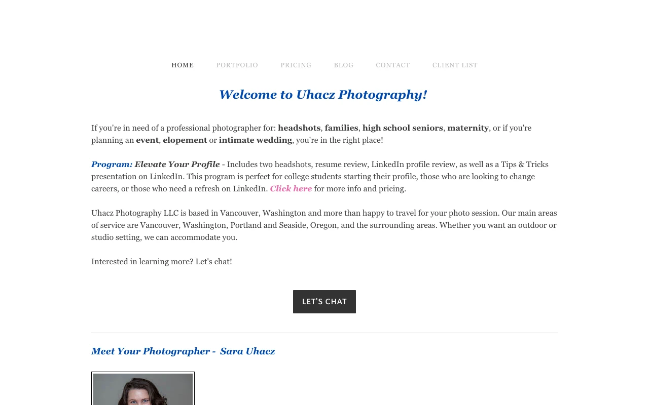 Uhacz Photography LLC is situated on Main Street, about 1.6 miles from the city center. Sara Uhacz has earned a 5.0 rating from 36 reviewers who praise her efficiency and high-quality results. She is particularly noted for putting camera-shy clients at ease and using multiple backdrops to provide variety for different professional branding needs. The session experience is described as relaxed and thoughtful, ensuring that clients never feel rushed during their appointment. Many professionals appreciate the fast turnaround for final images, which is helpful for those needing to update outdated LinkedIn profiles quickly. The studio offers a professional setting that yields natural-looking results for corporate and personal branding. Visit studio website