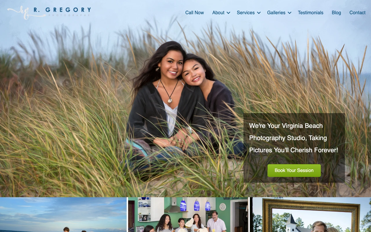 Ritchie Gregory, professional photographer, providing photography services in Sandbridge, Virginia Beach, Norfolk, Chesapeake and around Hampton Roads. Specializing in beach family portraits, weddings, engagement photos, pet photos... The website highlights services such as about community involvement, clothing guides, and professional photographer. Google Maps currently shows a 4.8 rating from 18 reviews. One recent review notes: Adelaide is absolutely amazing to work with. We did a formal photo session for my son’s senior portraits and I could not be more happy with the process and the photos!! She was super pleasant to work with, great communication and our photos came out perfect. I can’t wait to see her for our next photos and higly recommend her! Virginia Beach clients looking for polished, business-ready images should consider this studio if the portfolio style matches what they need. Visit studio website