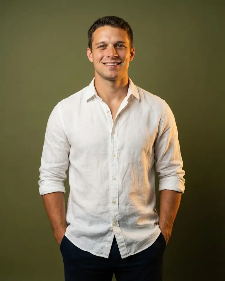 Clean headshots, simple backdrops, and soft studio light. T-shirts, button-downs, nothing fussy. Straightforward portraits that feel natural and let your face do the talking.