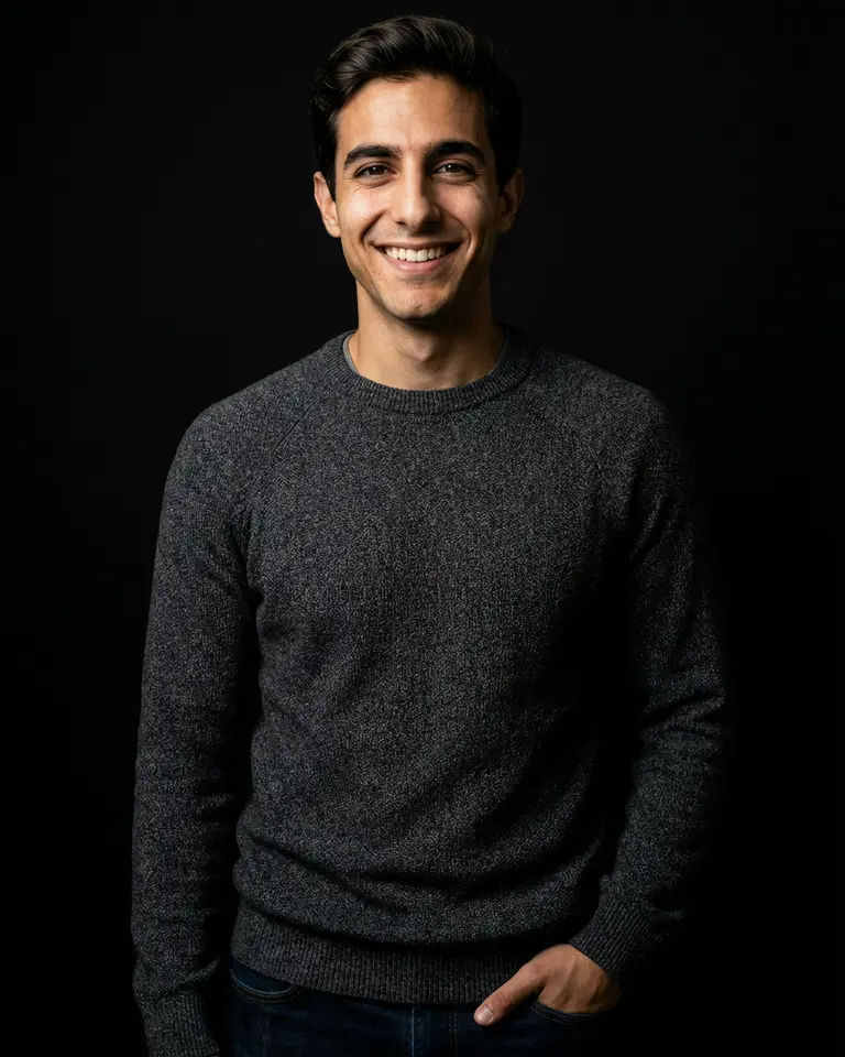 - Color & Grade: Neutral daylight (5500K). Clean, true-to-life skin tones. Deep black shadows in the background.