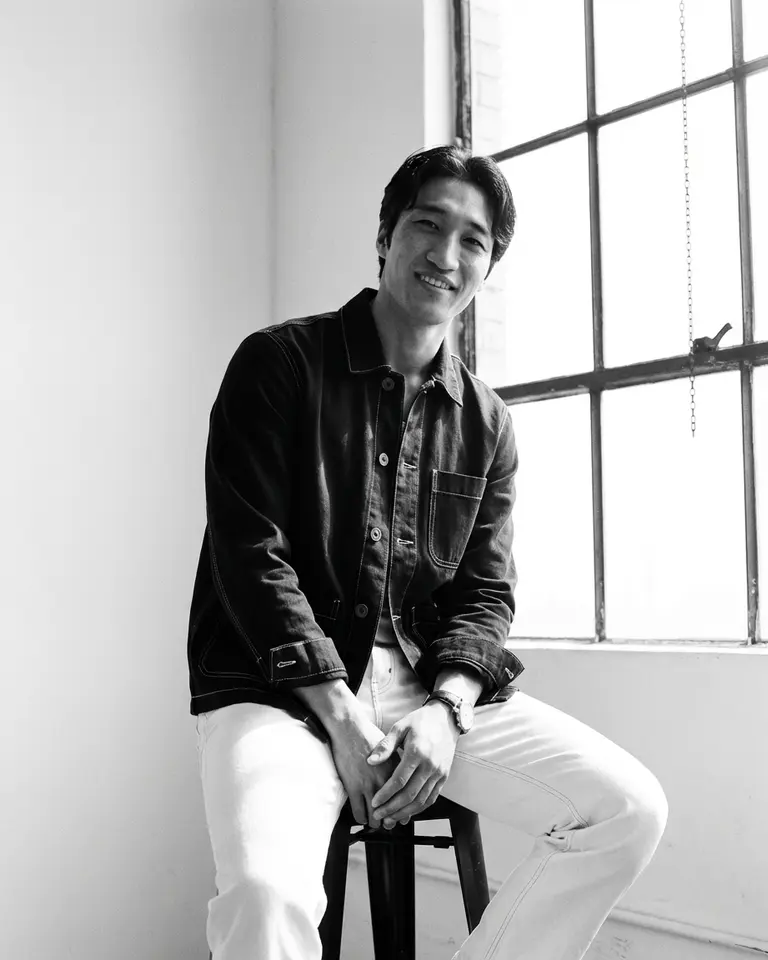 See yourself in a high-contrast monochrome portrait that captures the energy of a bright daylight studio. Strong natural light streams through an industrial window to sculpt your features, balancing deep blacks with crisp, blown-out whites. This modern aesthetic offers a sharp, editorial look defined by clean lines and tailored workwear.