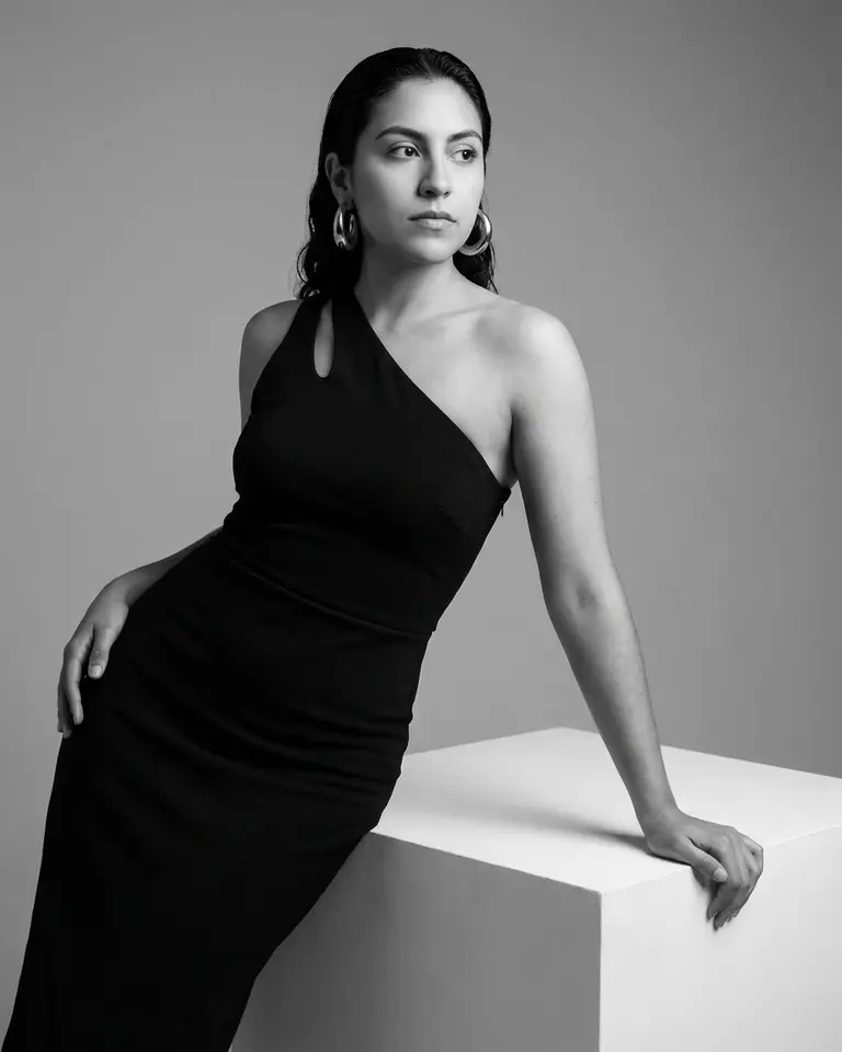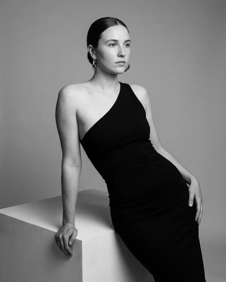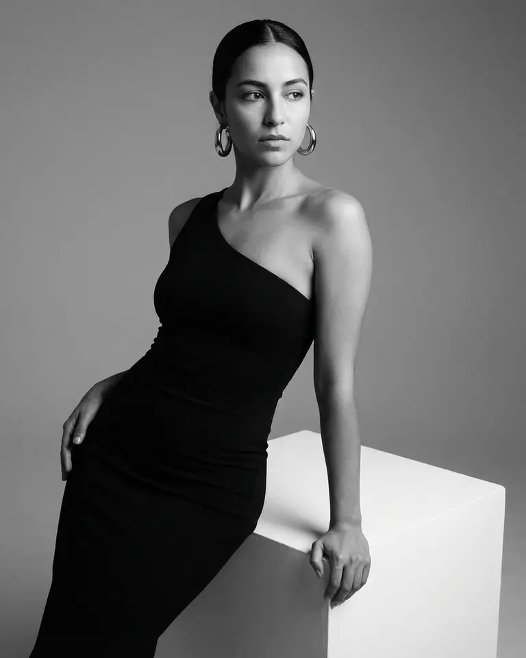 MOOD: Sophisticated studio editorial. Quiet confidence, poised elegance, and timeless beauty.