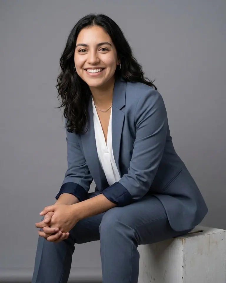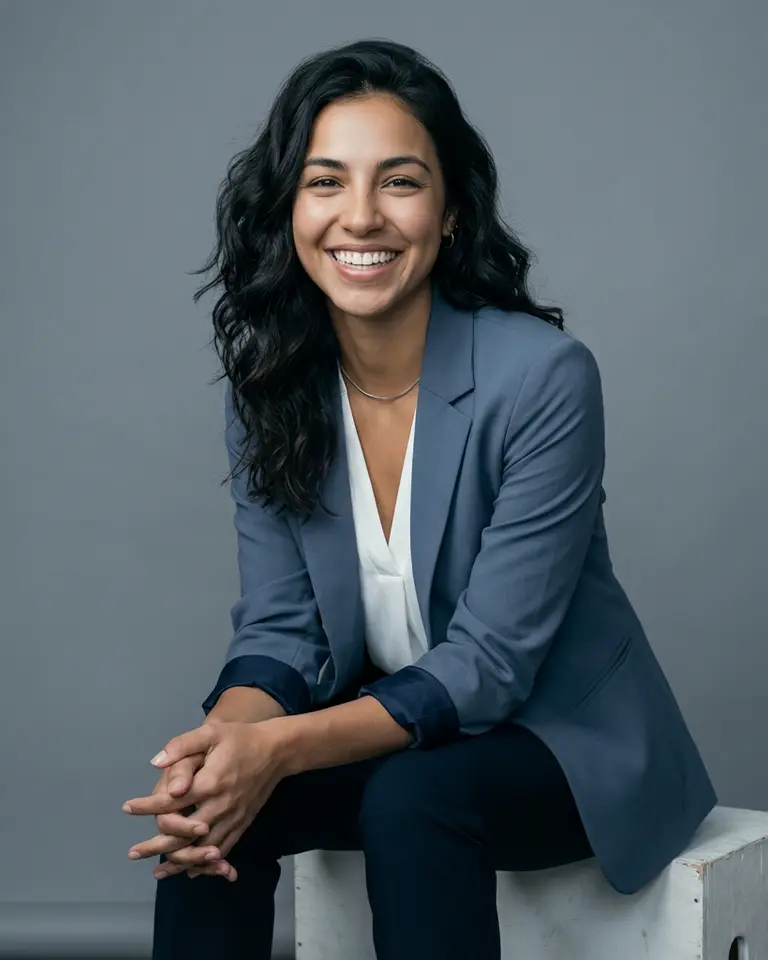 MOOD: Friendly corporate headshot, approachable, trustworthy, commercial stock photography style.