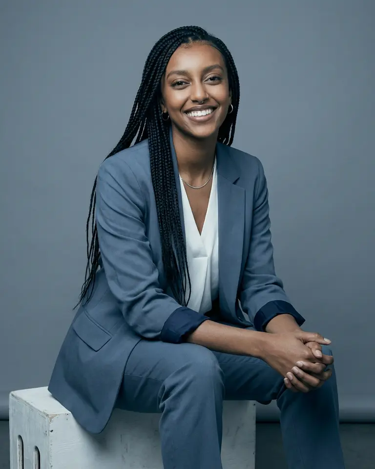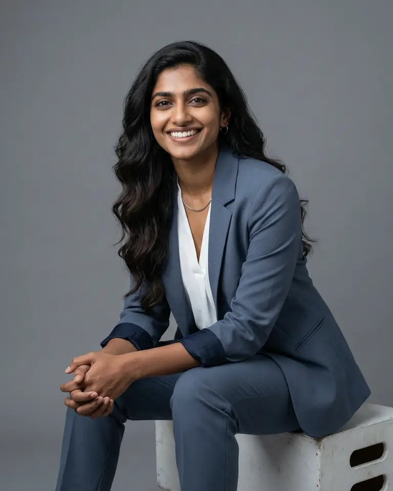 - Lens Feel: 85mm portrait, sharp focus on eyes, minimal depth of field but subject fully in focus.