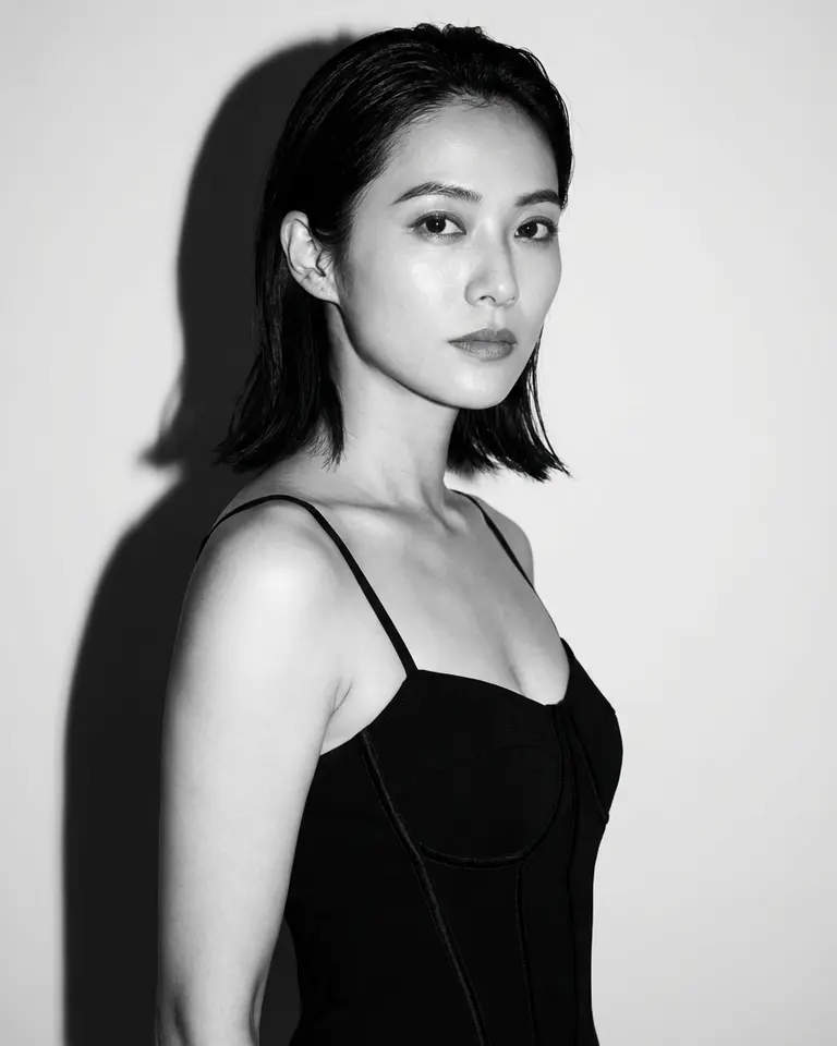 Channel the cool detachment of 90s minimalism with this high-contrast black and white portrait. Hard direct flash creates sharp, dramatic shadows against the wall to give you that raw backstage fashion vibe. It is a sleek, editorial style that feels effortless and understated.
