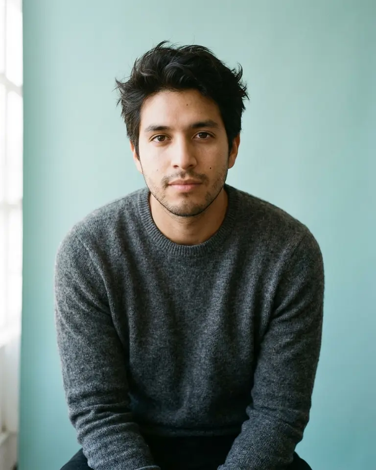- Angle & Distance: Eye level, medium close-up (chest up), subject centered but breathing room above head.