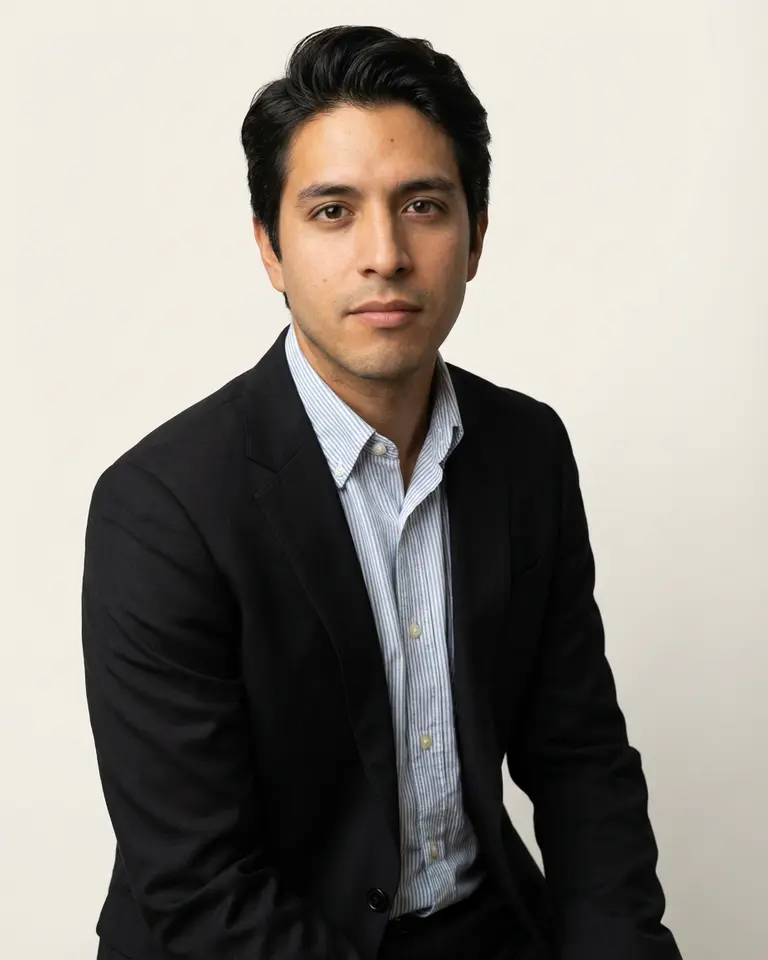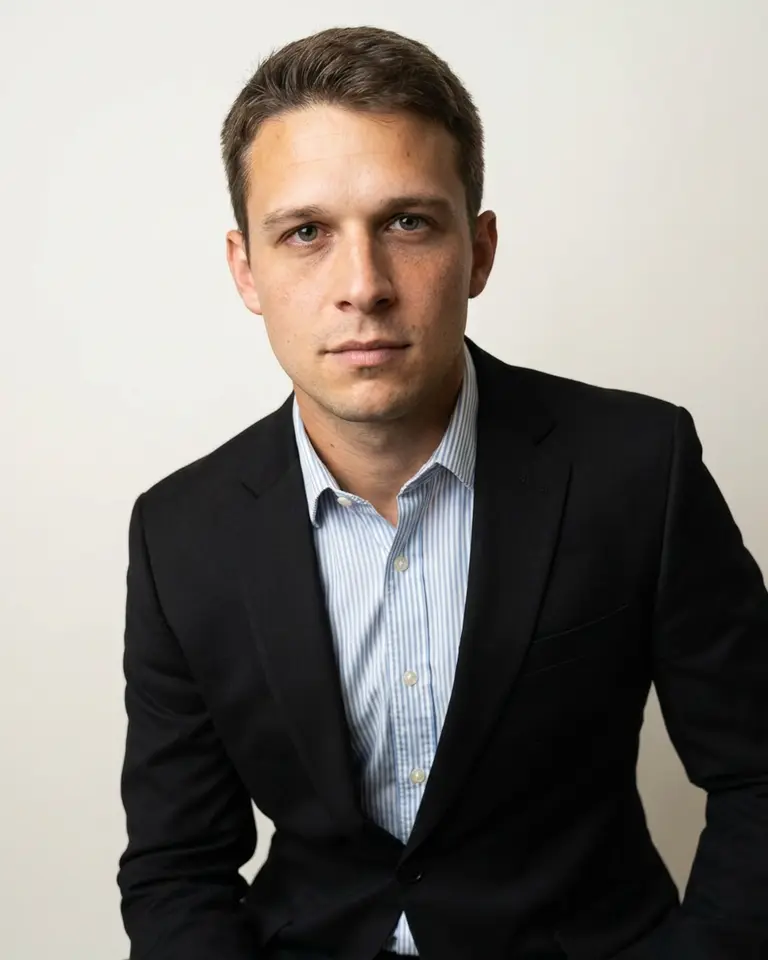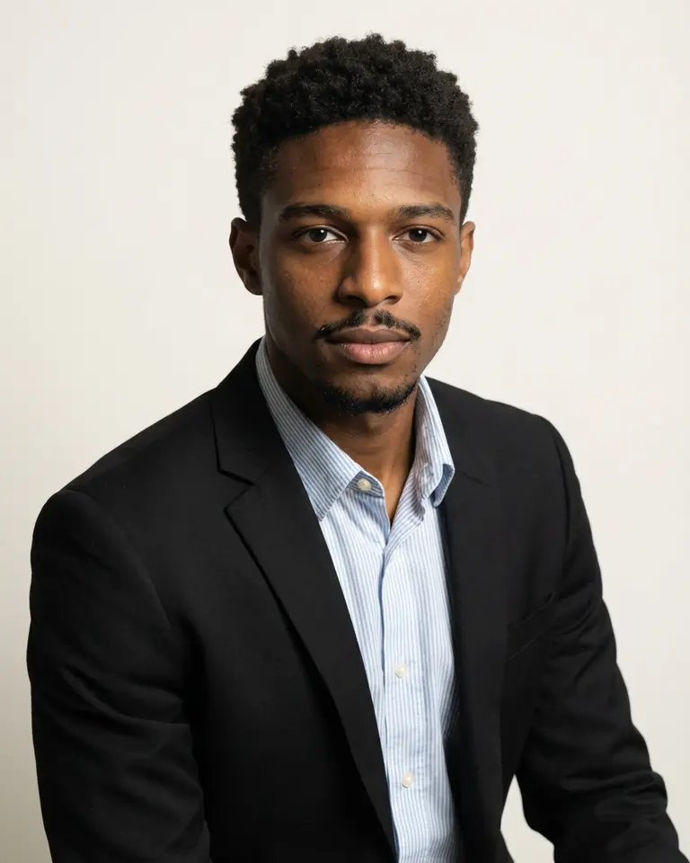 - Expression: Neutral to slightly confident composure, closed mouth, conveying competence and seriousness