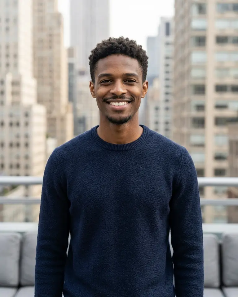 - Aesthetic: Smart casual professional, "startup founder" or "tech professional" headshot style