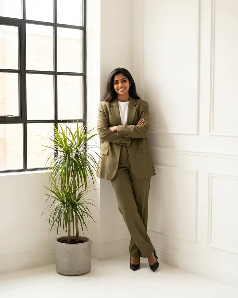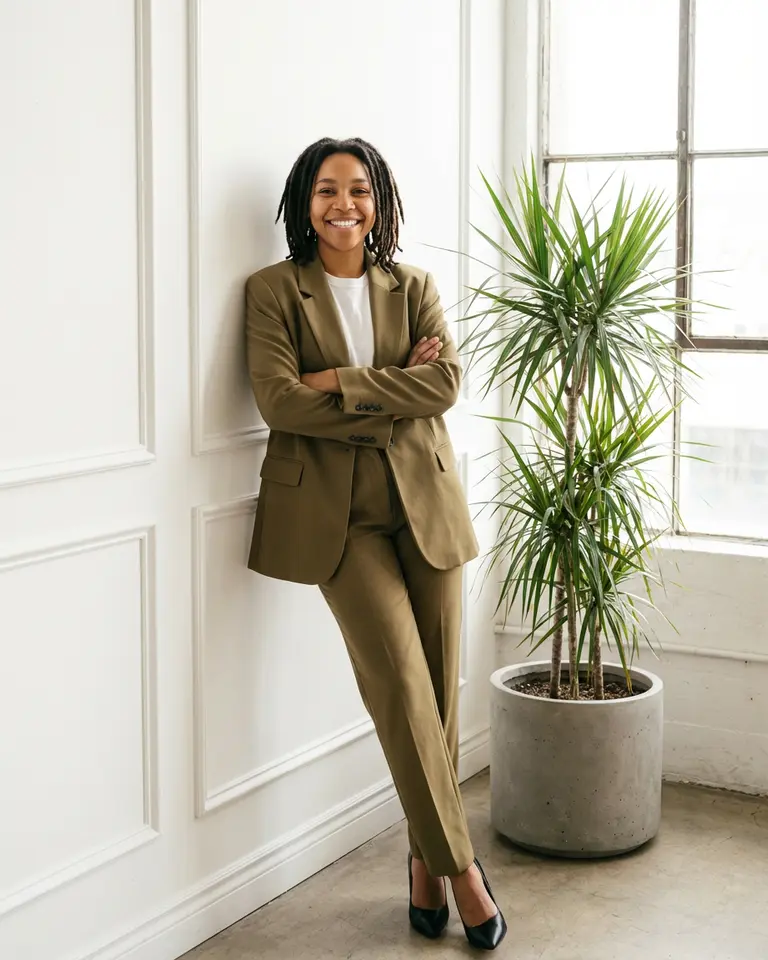 - Expression: Warm, approachable, happy professional energy.