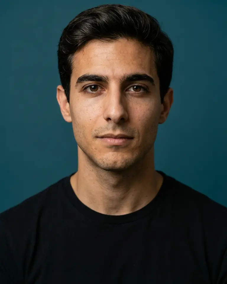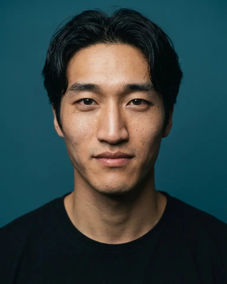 - Expression: Neutral to faintly pleasant, relaxed mouth with subtle approachable vibe, calm demeanor