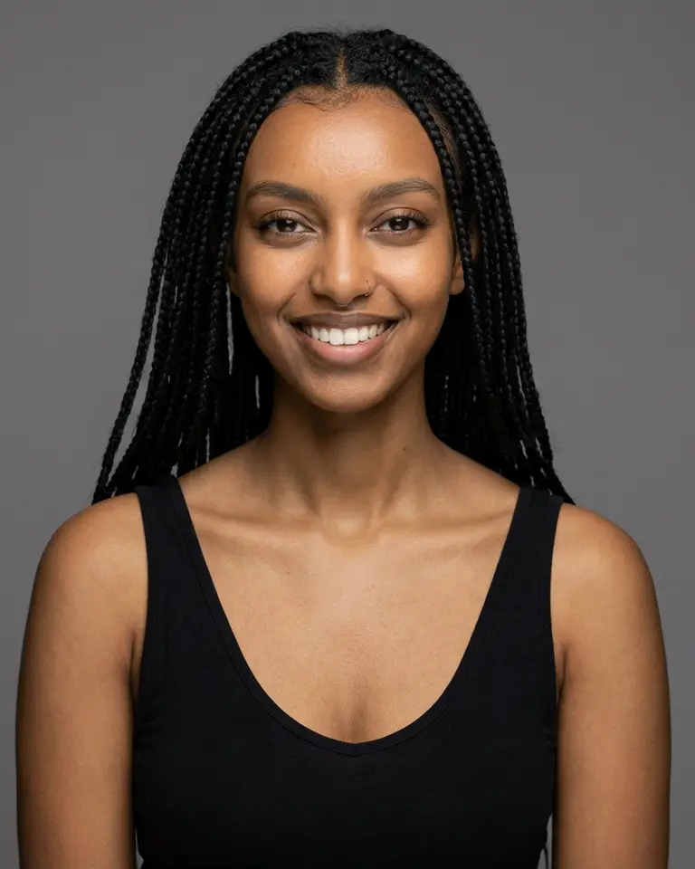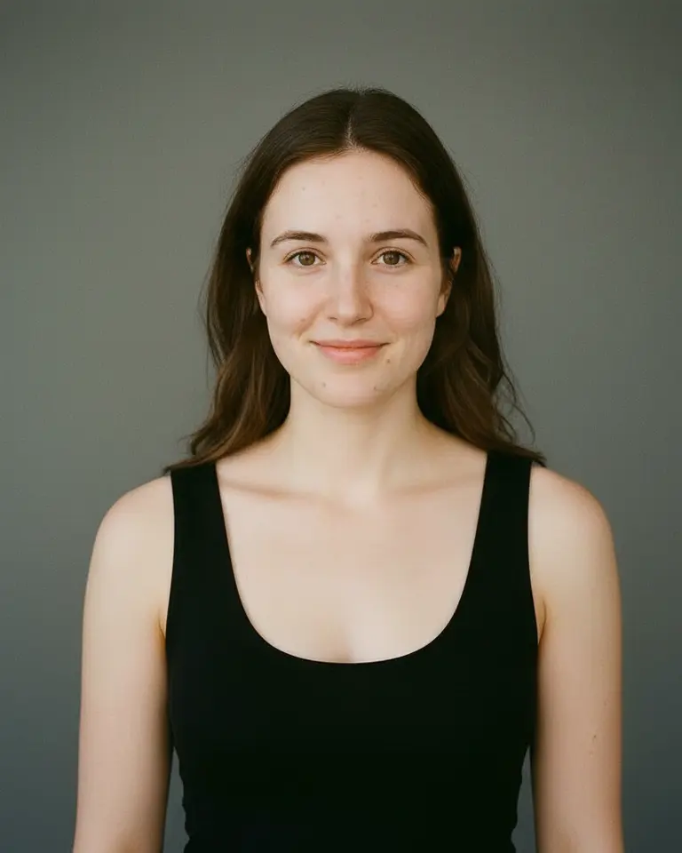 - Aesthetic: Minimalist professional actor headshot / casting polaroid vibe.